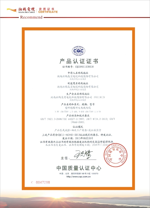 湘鶴電纜檢驗報告